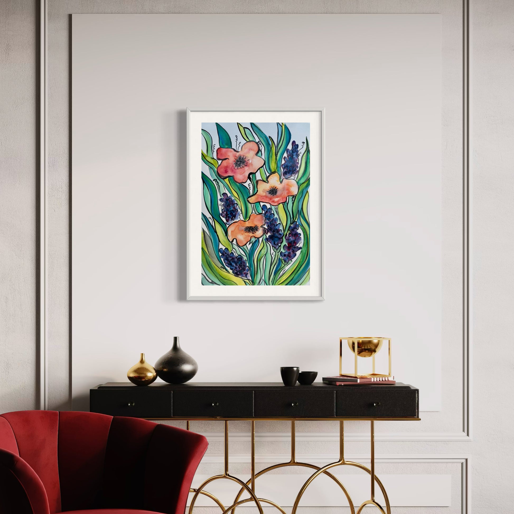 Abstract Poppies Original Watercolor Painting